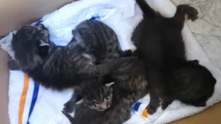 子猫4匹が寄り添って眠る様子|保護当時の写真